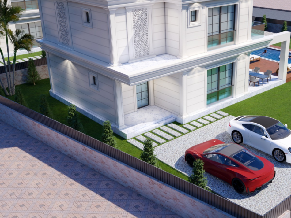 Villaya özel, birden fazla aracı rahatça alabilen geniş otopark