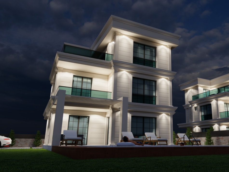 Villanın dış tasarımına estetik bütünlük kazandırıyor